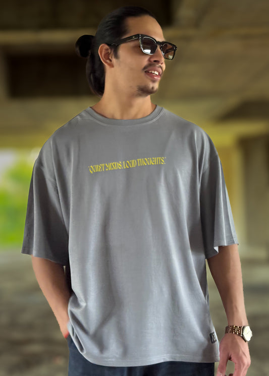 “Quiet Minds, Loud Thoughts” Oversized Graphic T-Shirt – Grey